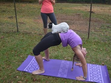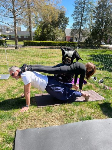 Goat yoga is a fun therapeutic experience. We provide 50-60 minutes of a beginner level yoga by a certified instructor while our goats of all ages meander through the class. All of our goats are miniatures so even the adults look like babies. Our goats are very friendly and love to participate. Favorite poses? Down dog and warrior. Why? They love to use your legs as a tunnel to walk through. Be careful in cat/cow! The babies love to jump on your back. After yoga, take all the time you need to get poses in plank, wheel, pigeon or group shots.